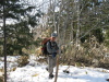 源氏岳へは峠から鉄塔への林道をたどり、テープをたよりにササヤブへ進入する。