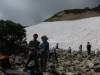 八方池から唐松山荘へ向かう道、途中雪渓が残る場所あり。一時その場で休息。